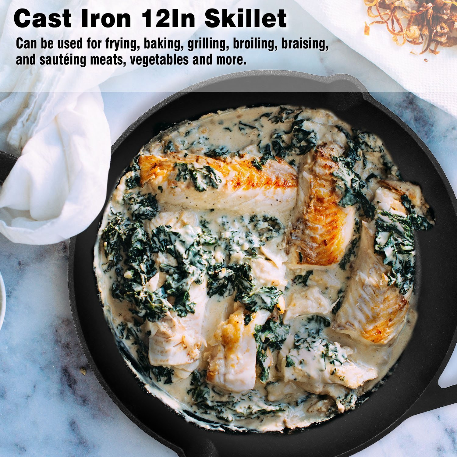 Home > Pre-Seasoned Cast Iron Skillet Oven Safe Cookware Heat-Resistant Holder 12inch Large Frying Pan Non-Stick Like Surface Cooking Frying Searing Baking